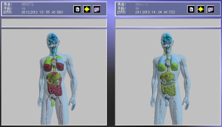 同時に、生活習慣の改善指導や栄養アドバイス、適応食品リストおよび調理方法の推薦も健康状態のチェックリストと一緒に日本語でプリントアウトされます。またメタボリック症候群、内臓脂肪の状態、ダイエットの効果の推移状況等も被爆の心配なしに気軽にチェックすることができます。